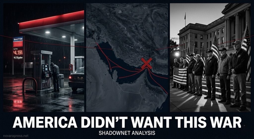 The evidence is not ambiguous. Before the war began, a supermajority of Americans opposed it. After it began, that opposition held — and in several polls, deepened. The war was not sold to the American people. It was launched over them. The Constitutional mechanism for democratic accountability — a Congressional vote — was blocked on party-line margins. The economic consequences are now landing in every gas tank, every grocery receipt, every small business payroll that cannot absorb $5 diesel.